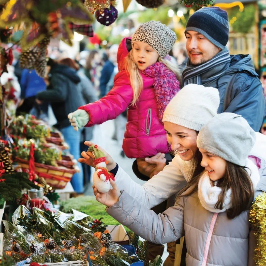 Come join us at this vibrant, bustling market where visitors come to find one-of-a-kind gifts and decor while wandering in a magical setting surrounded by twinkling lights, beautiful holiday displays, and seasonal charm.
